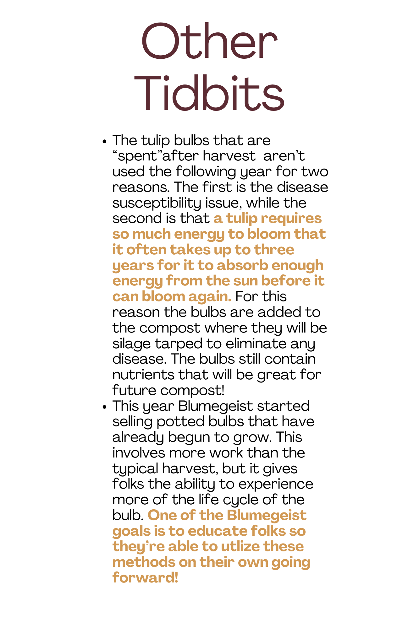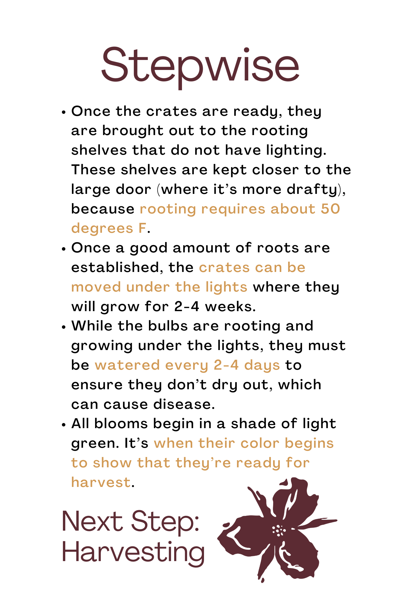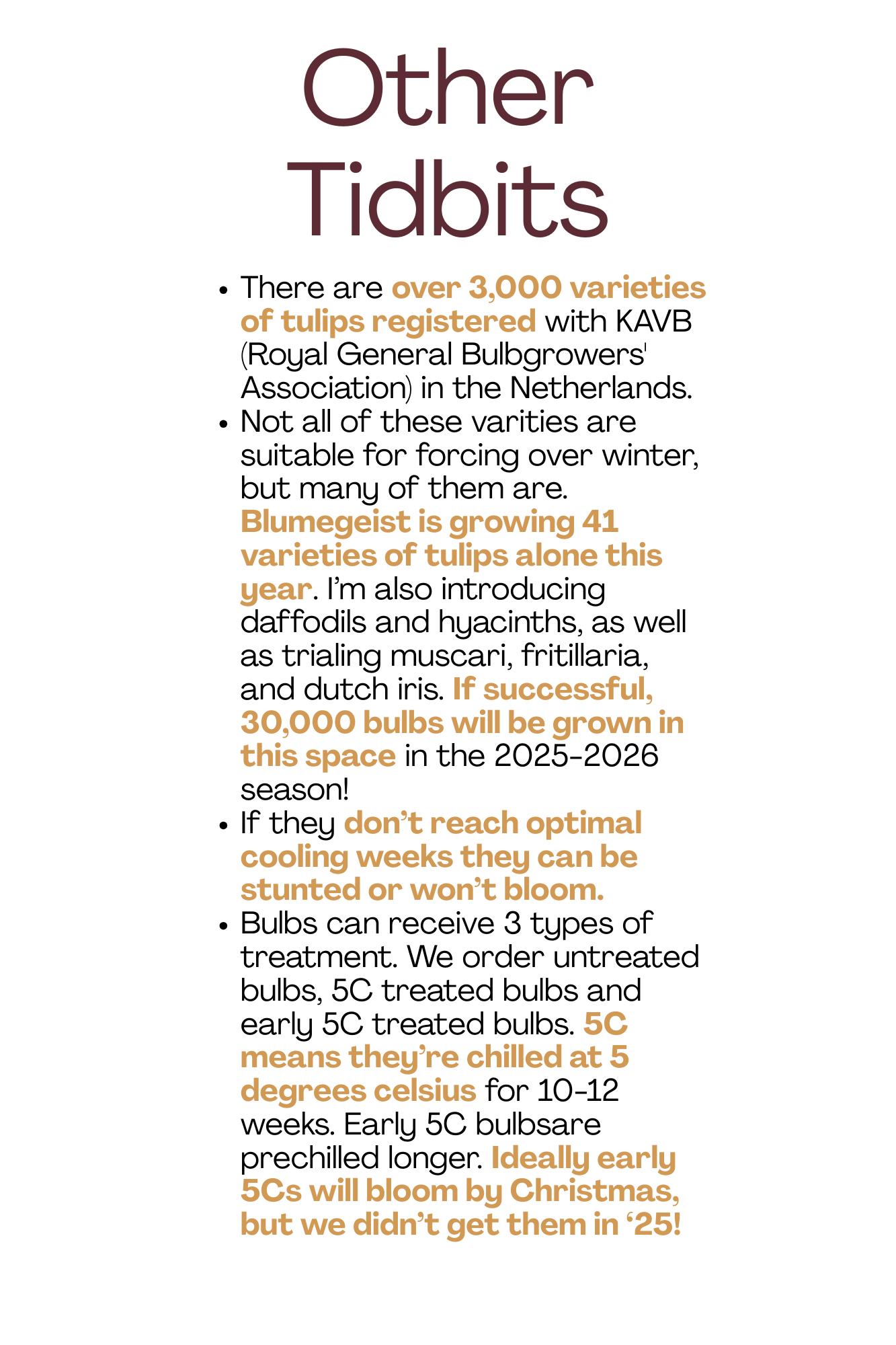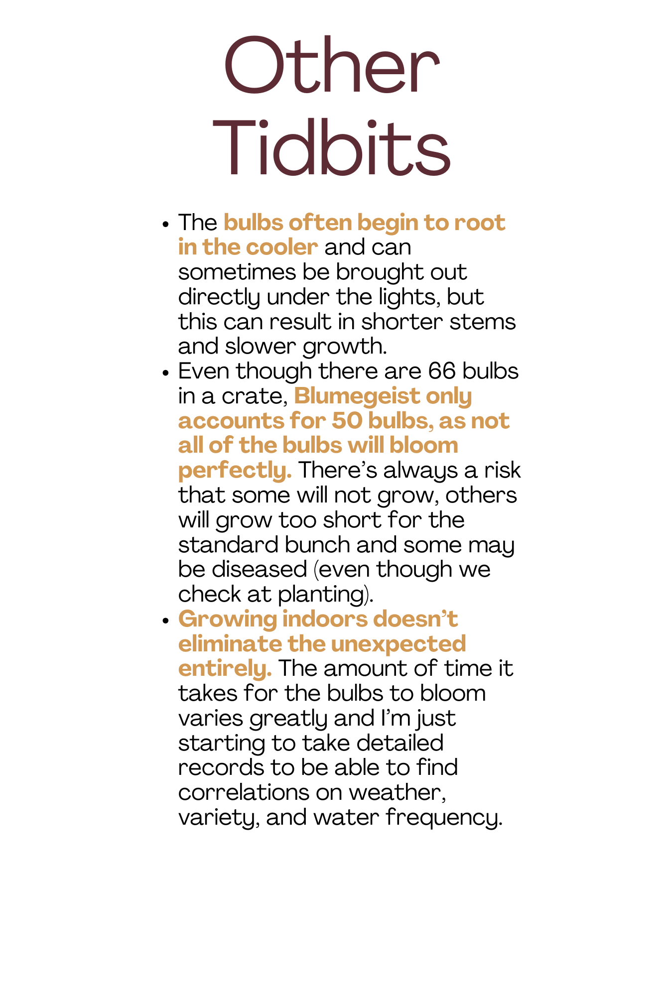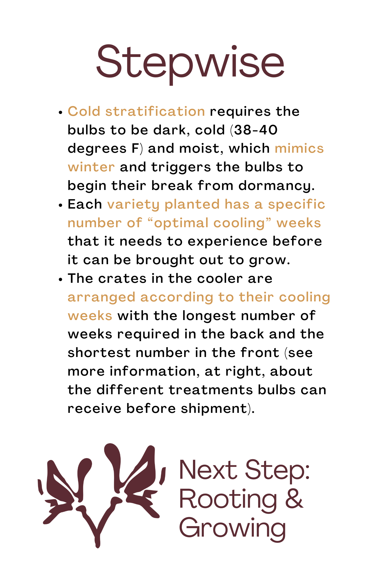 The first Blumegeist Open House was a hit! I had a great time chatting with folks about the process necessary to achive blooming flowers in the dead of winter. Folks learned the four primary steps of this process: Planting, Cold Stratification, Rooting & Growing, and Harvesting. Below are the posters that were part of the tour. I’m hoping to do this again as the weather warms up this spring - more info coming soon.